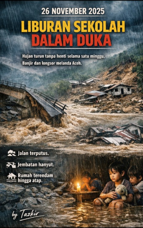 Namun, bagi sebagian masyarakat Aceh, khususnya di wilayah yang terdampak banjir dan longsor, liburan sekolah tahun ini berubah menjadi lembaran duka sulit dilupakan.
