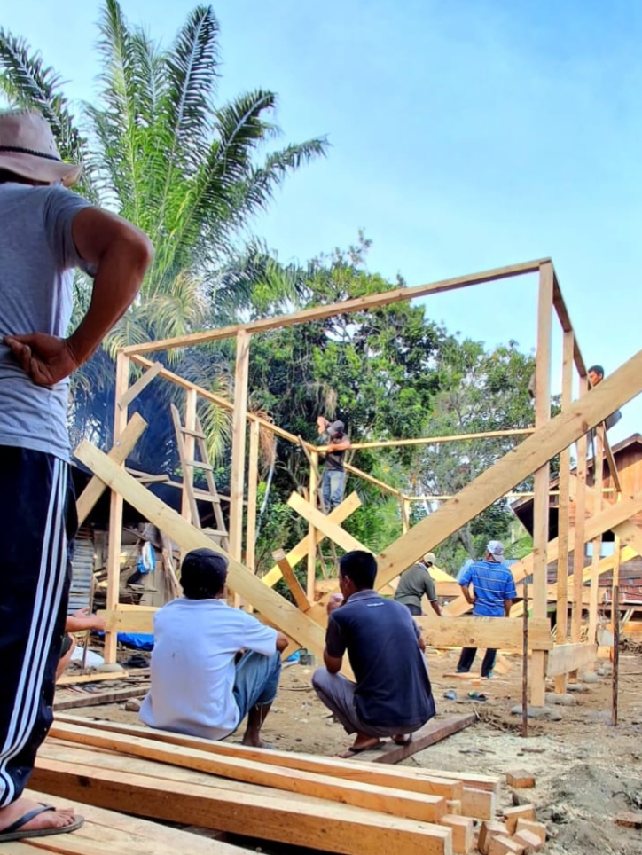 Dari total empat unit rumah yang direncanakan untuk keluarga paling terdampak, rumah pertama telah selesai dibangun. Sementara saat ini relawan dan warga sedang melanjutkan pengerjaan rumah kedua dan ketiga.